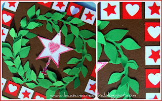 Su un cartoncino bianco ho creato una cornice con della strisce di carta con degli agrifogli e poi ho timbrato il bellissimo angelo del set Christmas Silhouette di Inkadinkado: semplicemente meraviglioso! Nell'angolo un timbro con il sentiment Merry Xmas.