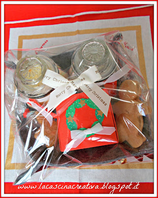 Per finire, ho confezionato il tutto con del cellophane e aggiunto un fiocco realizzato con un nastro bianco con la scritta Merry Christmas.